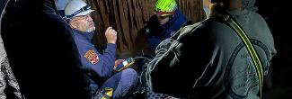 In December 2022, all five cache teams came together in Rockingham County for an exercise simulating a rescue in a cave. The local Grand Caverns provided an ideal training ground. While the caverns are most often used for commercial tours, there is a deeper portion where explorers can learn more about the cave. If an injury or an emergency were to happen, responders would head thousands of feet underground to rescue victims. In this scenario, they would need communications that can sustain a connection, even deep underground.